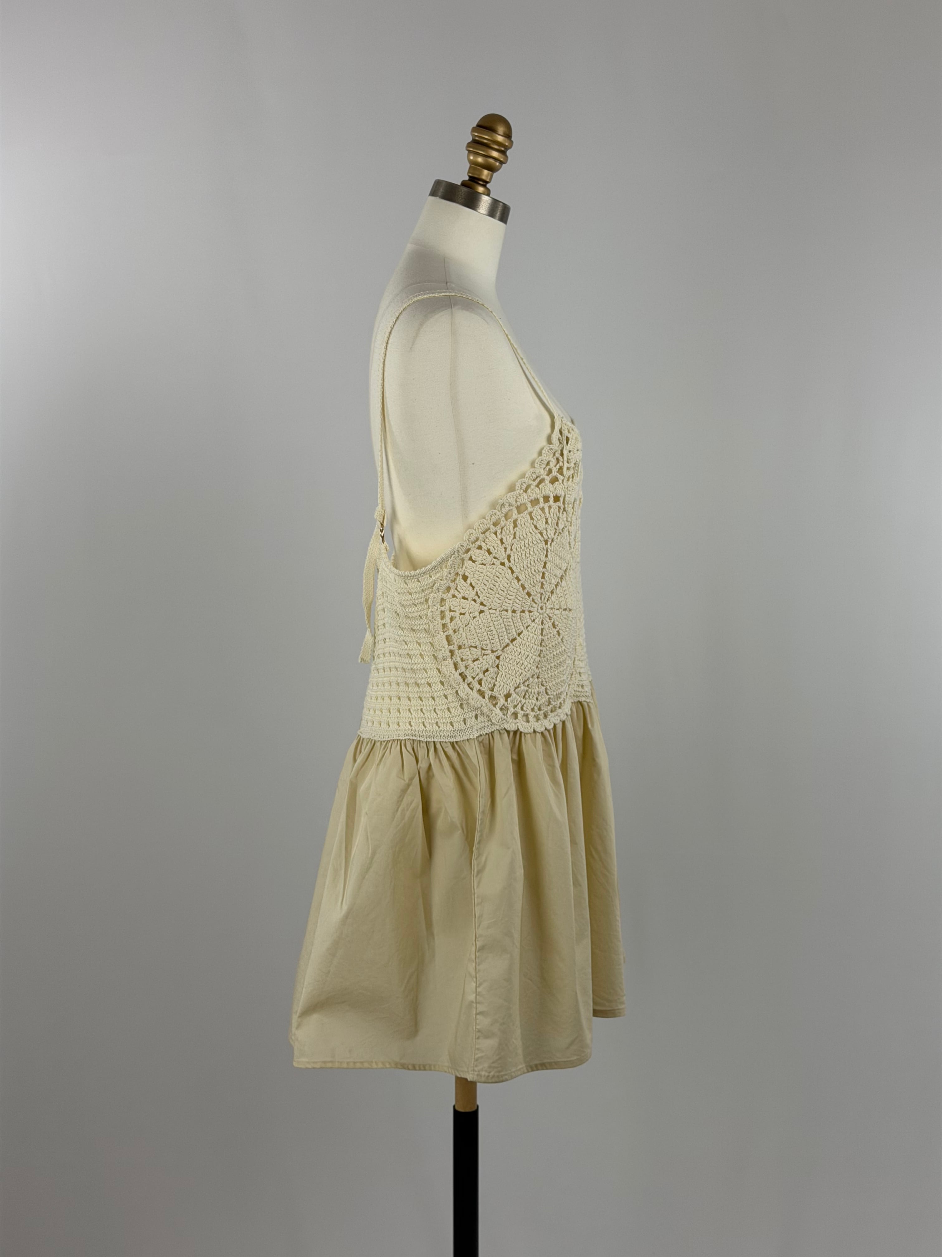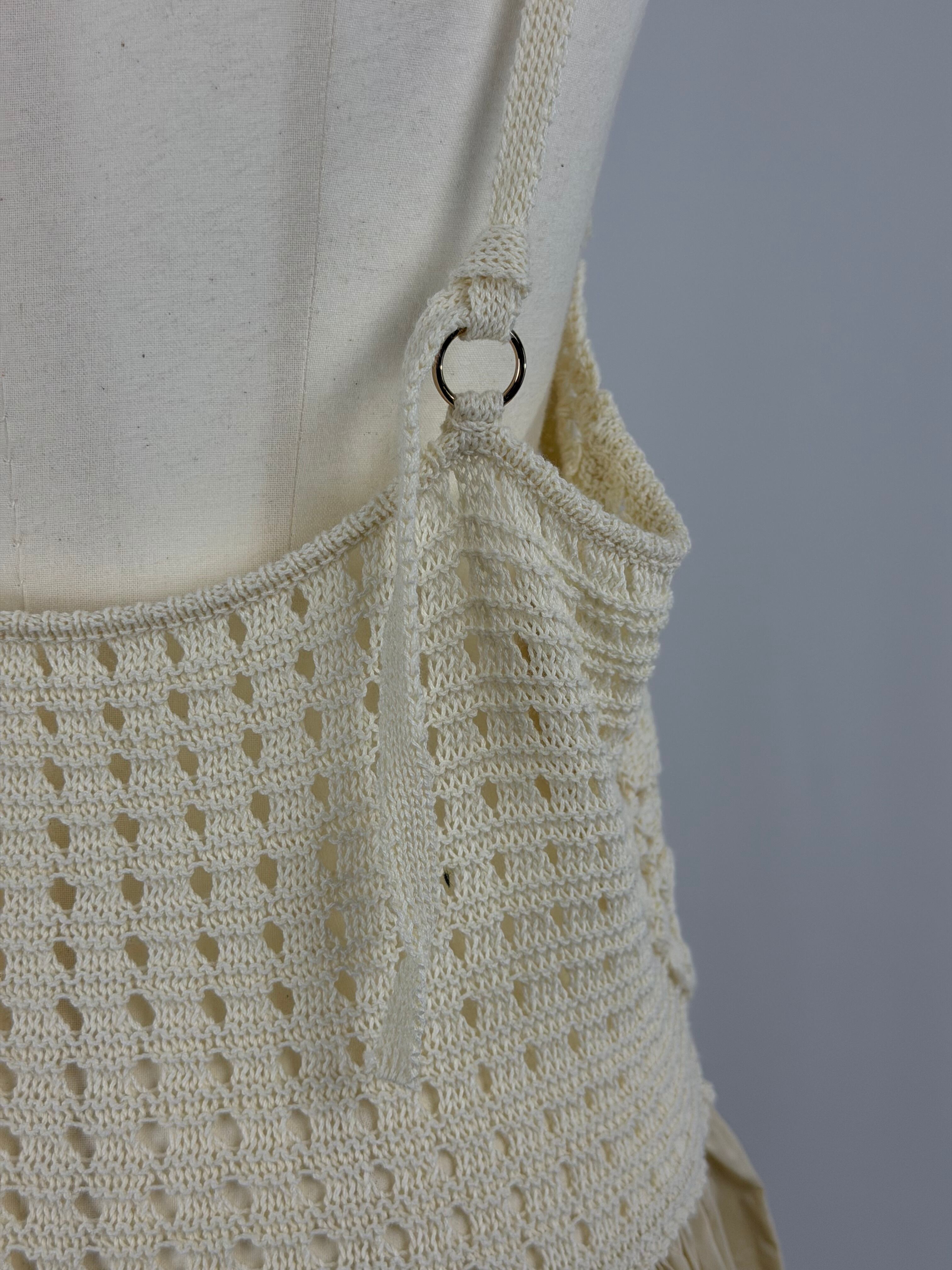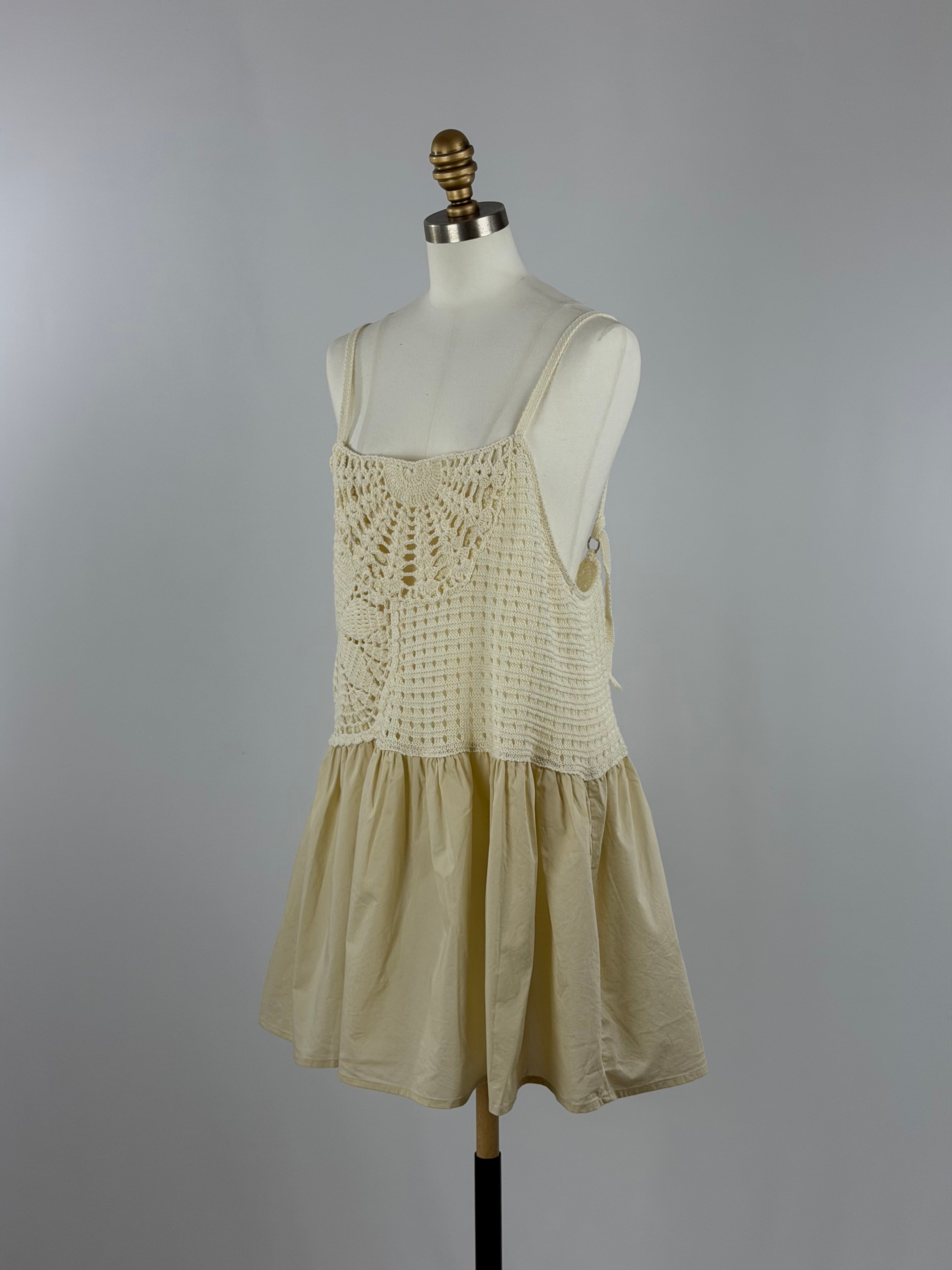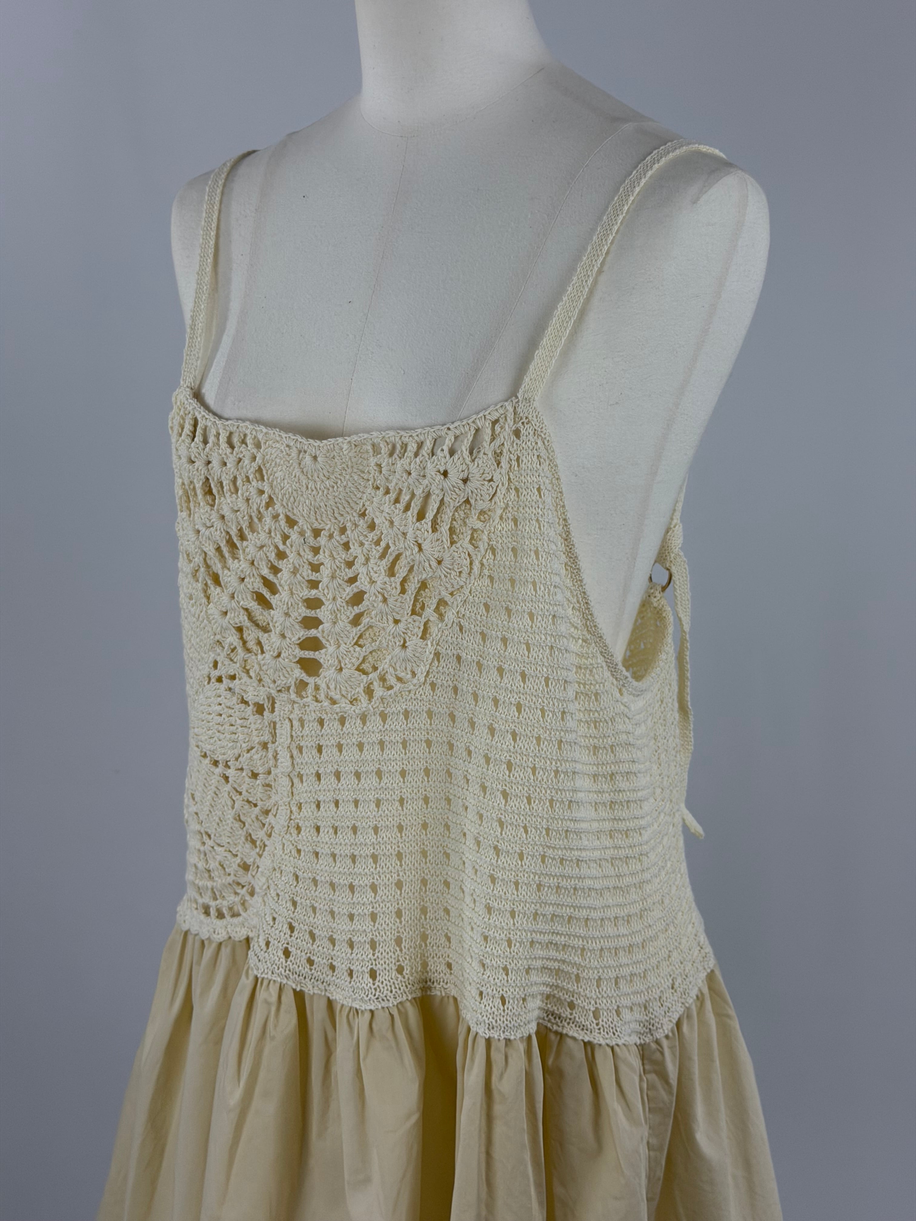 手編みのかぎ針編みが目を引く、存在感のあるプラスワンキャミソールトップス。