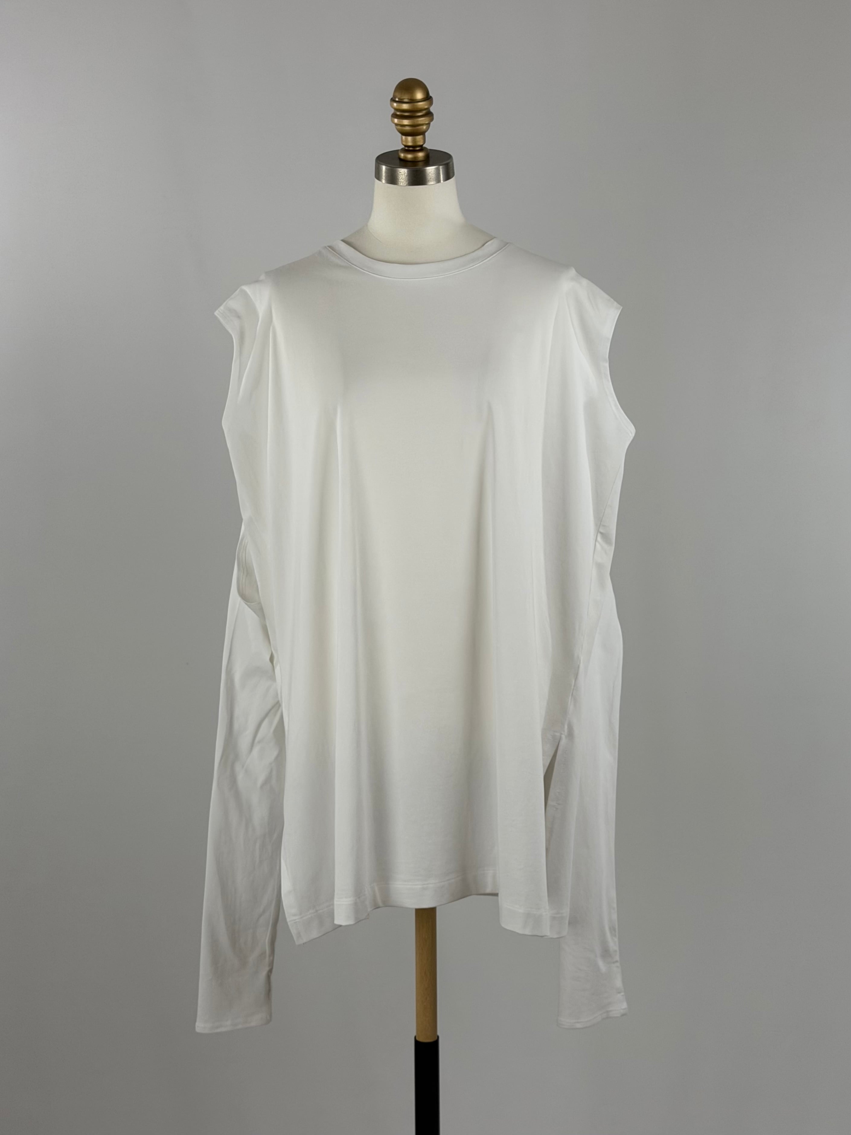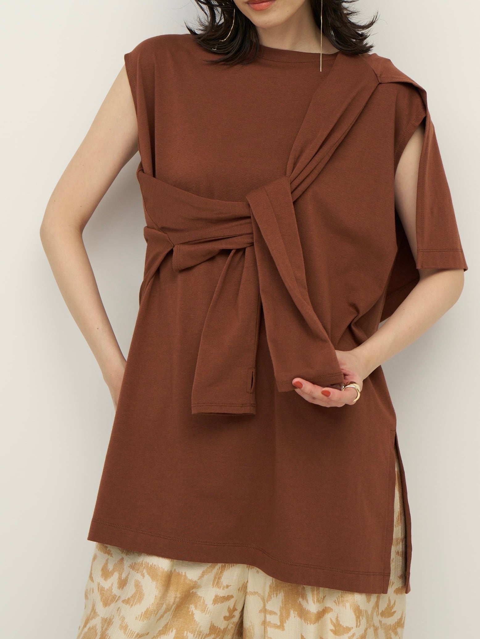 袖がついたようなデザインが効いた、様々な着こなしを楽しめるマルチWAYチュニック。