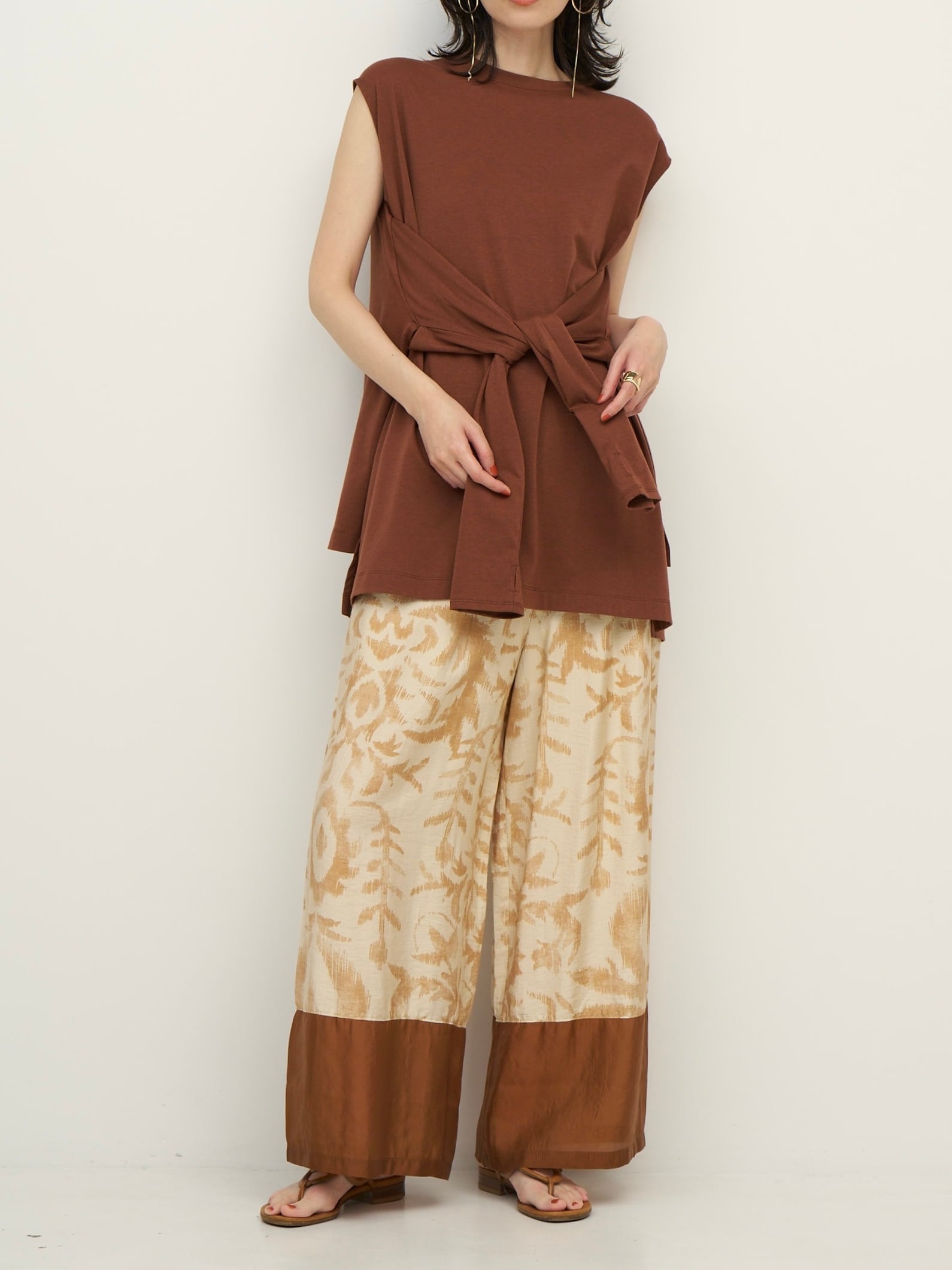 ウェストで結ぶ・ななめ掛け風に結ぶ・肩掛け風に結ぶなど、結ぶ系アレンジが自在で楽しい1枚です。