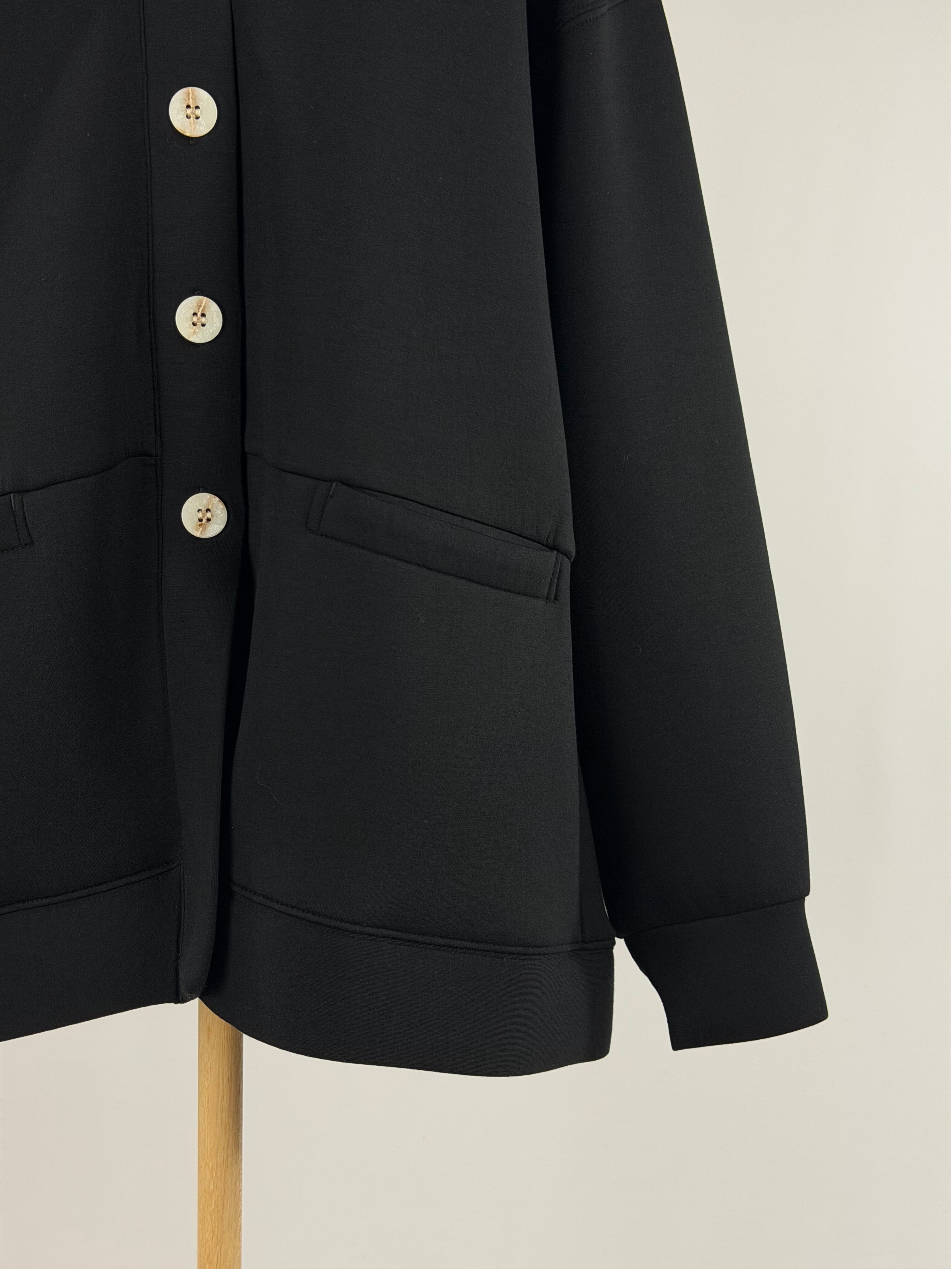 もちっとした弾力のあるダンボール生地を使用したカーディガン型アウターです。