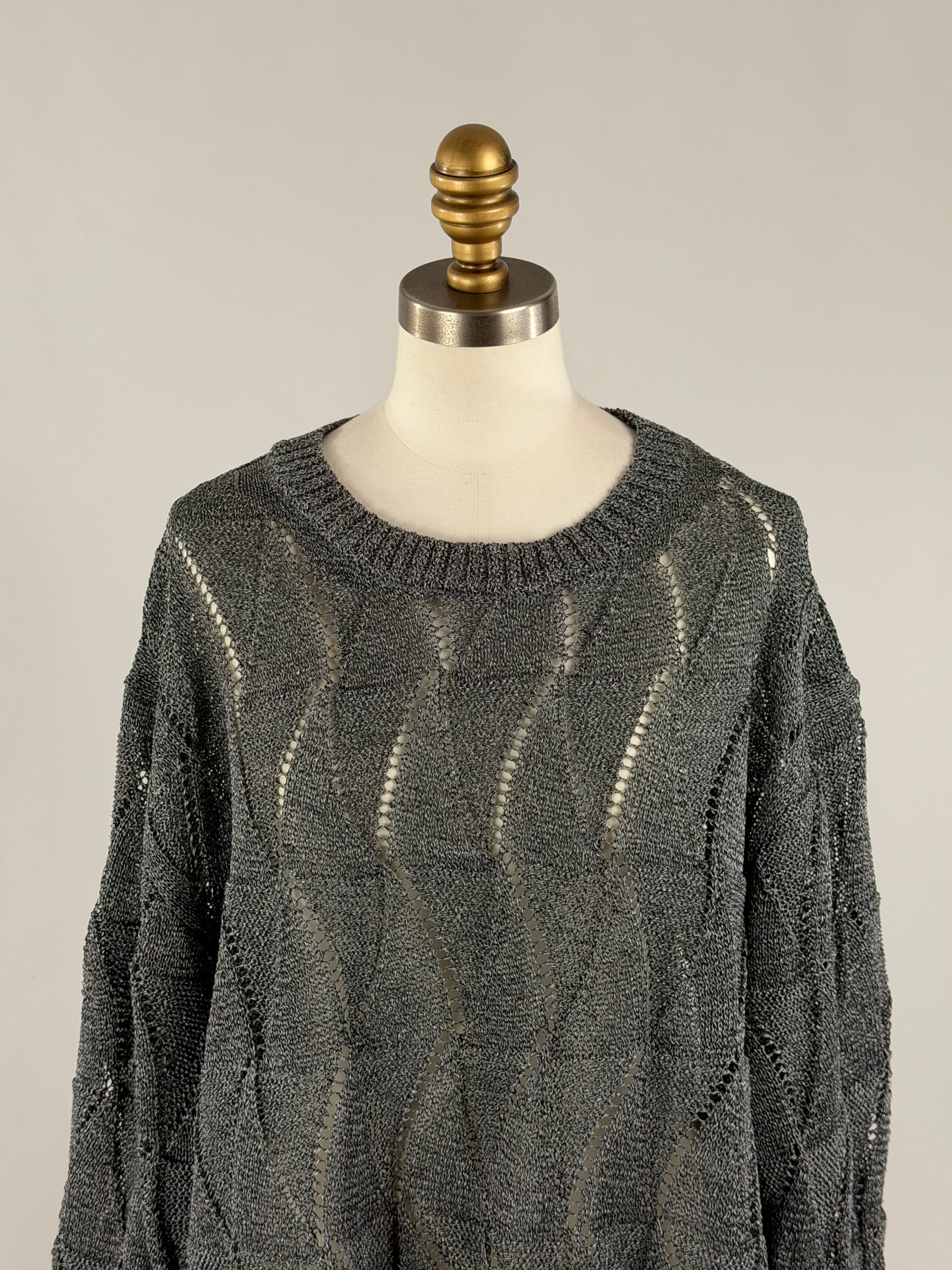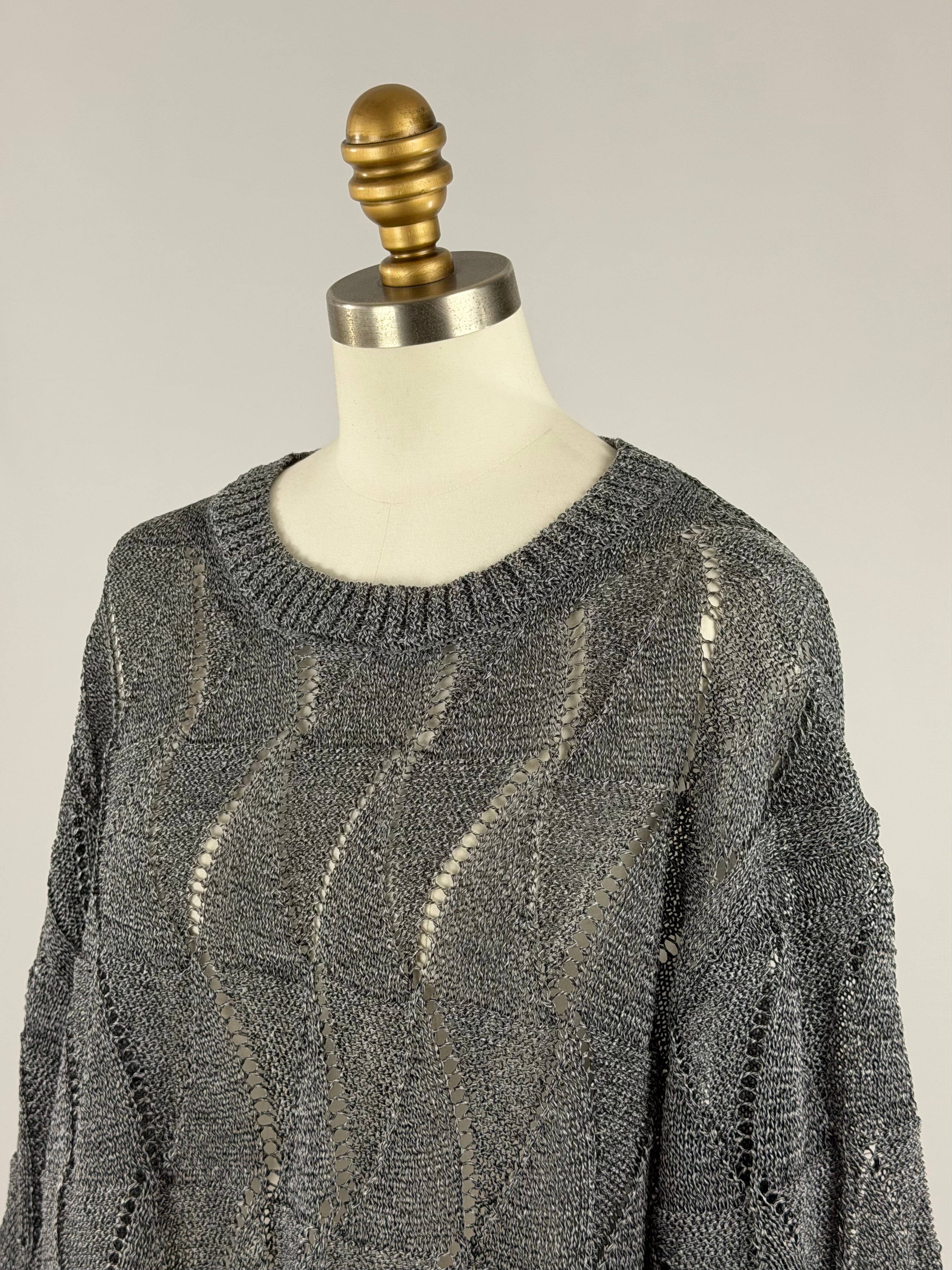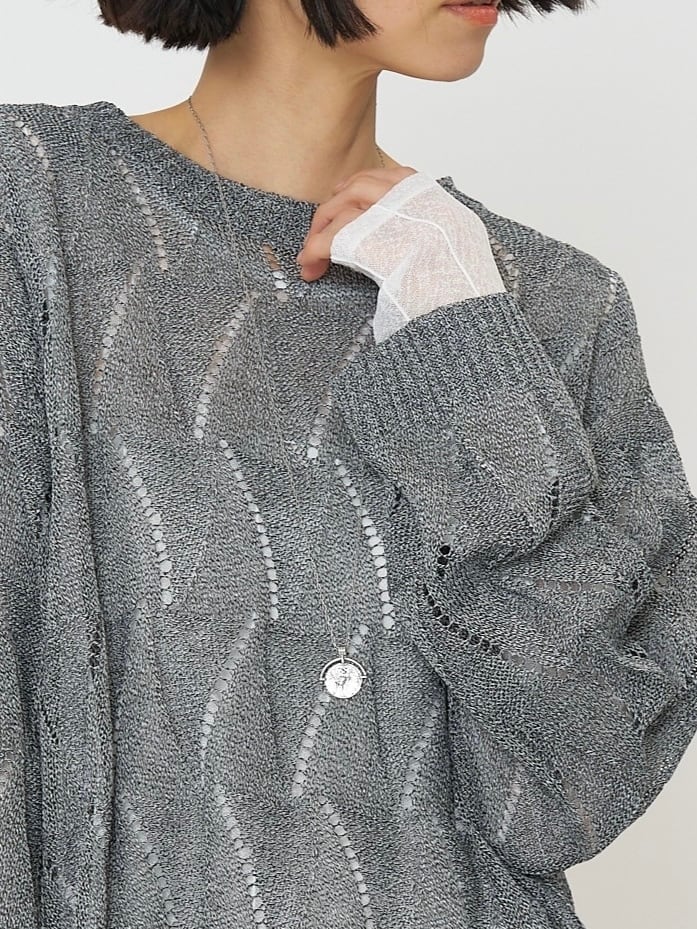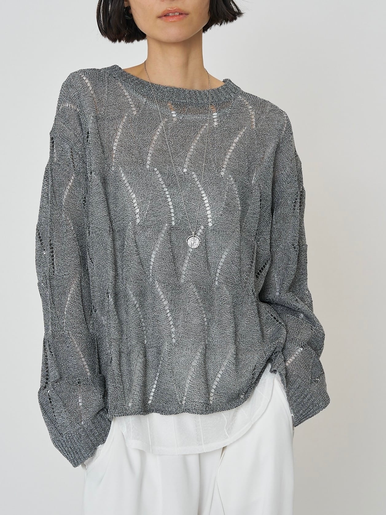 ペーパータッチなポリエステル糸を使用した、スカシ柄入りプルオーバー。