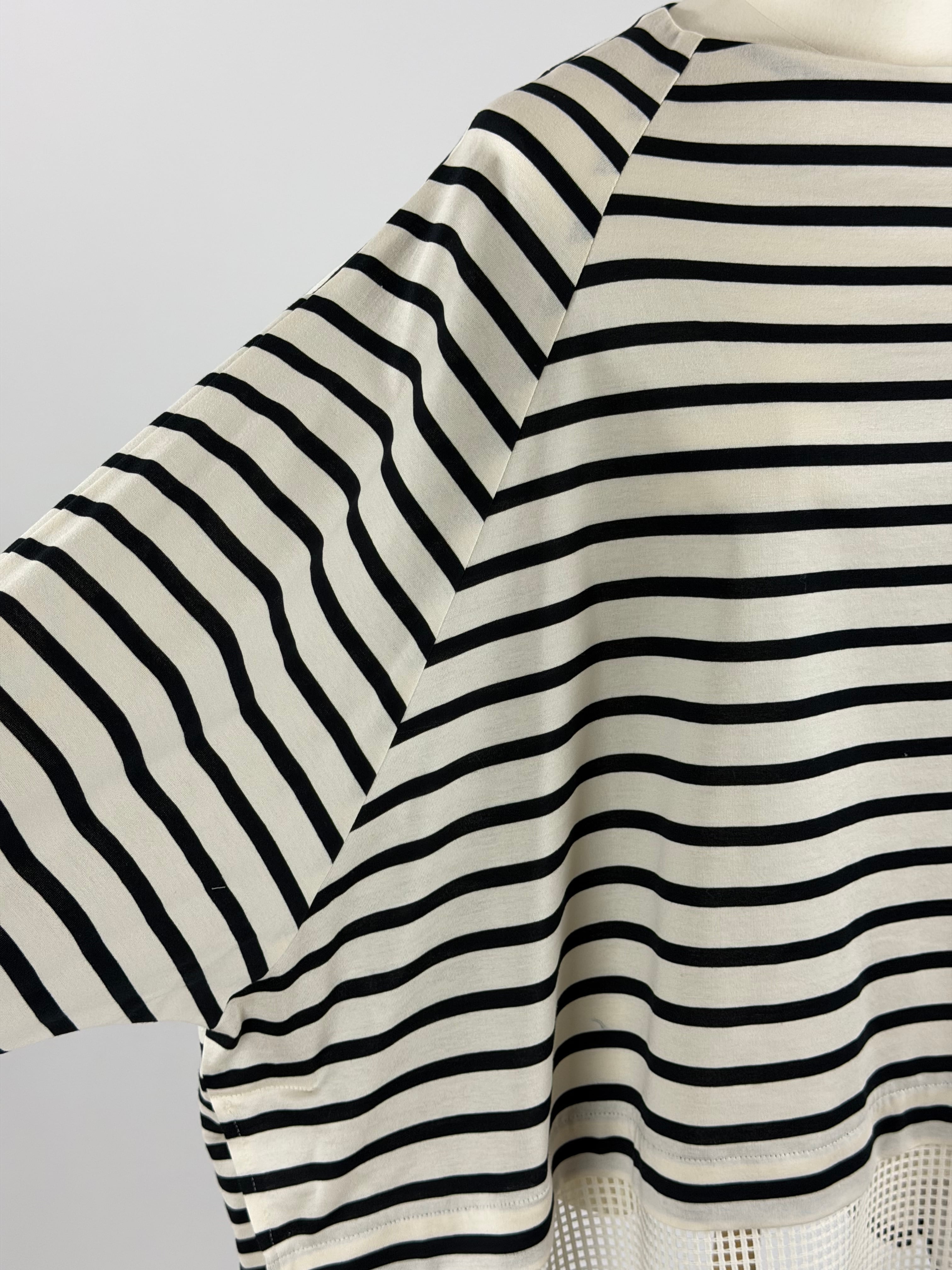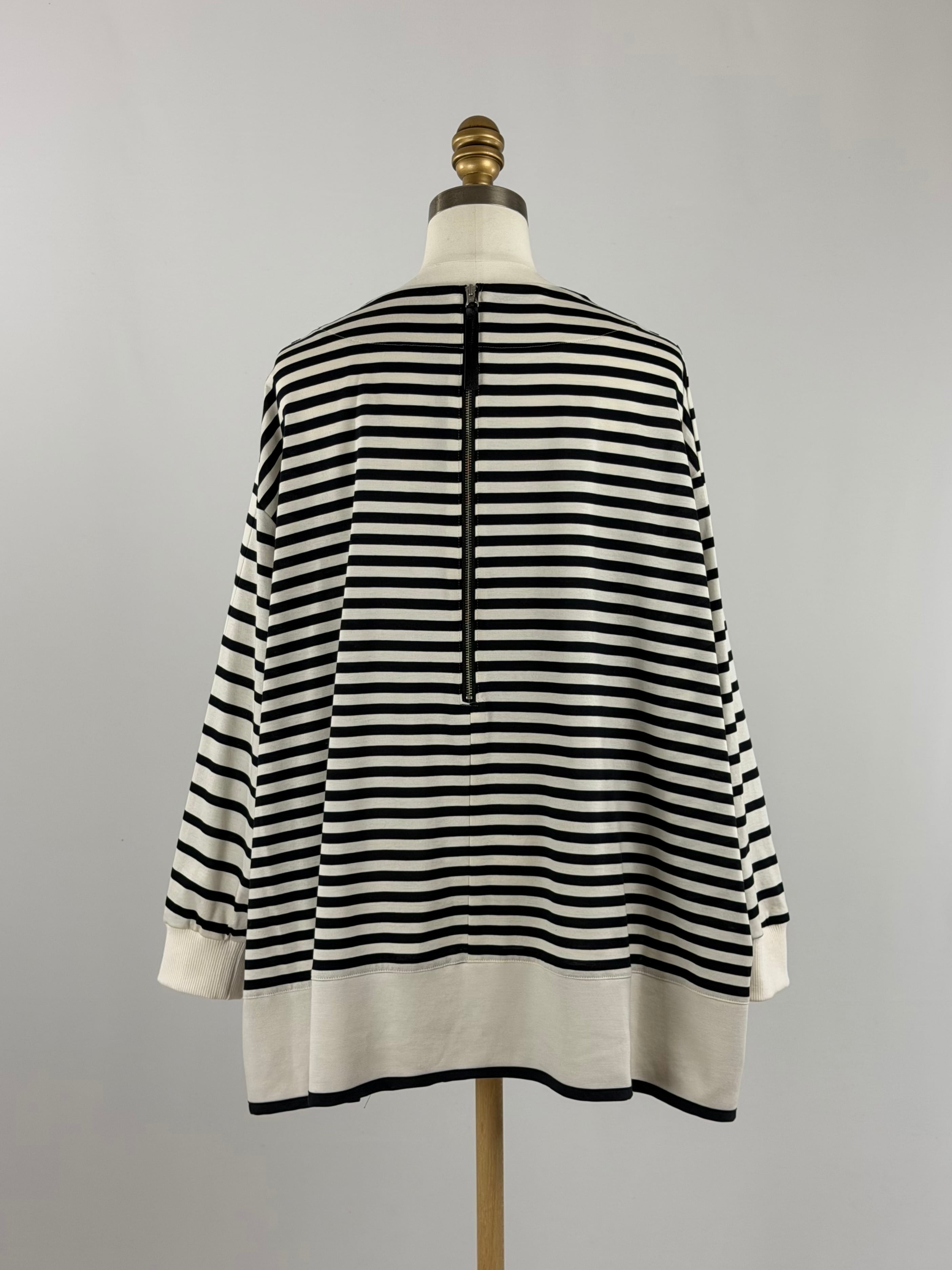 メッシュヘムボーダーフレアプルオーバー|ベージュ×ブラック|Lallia Mu