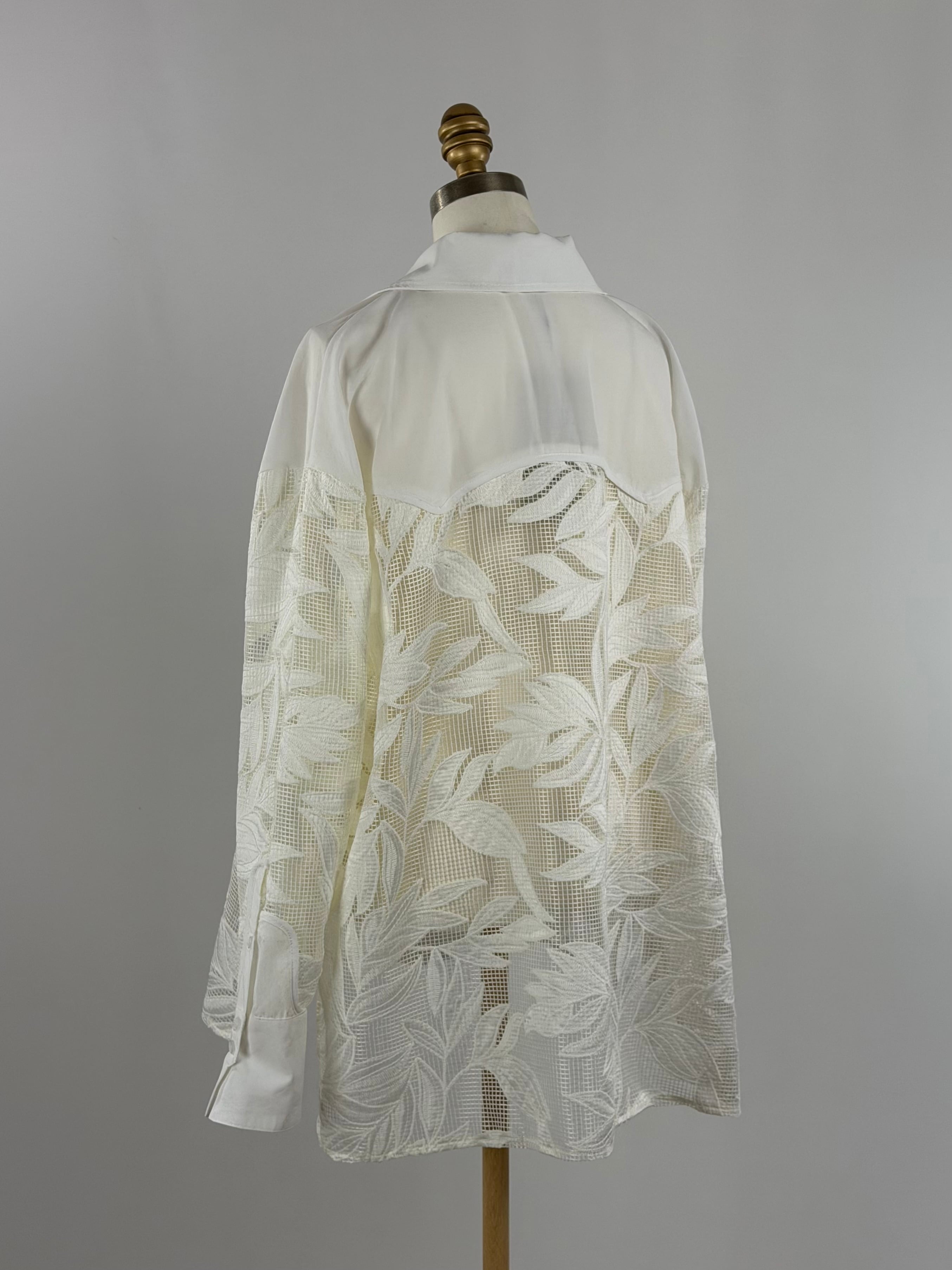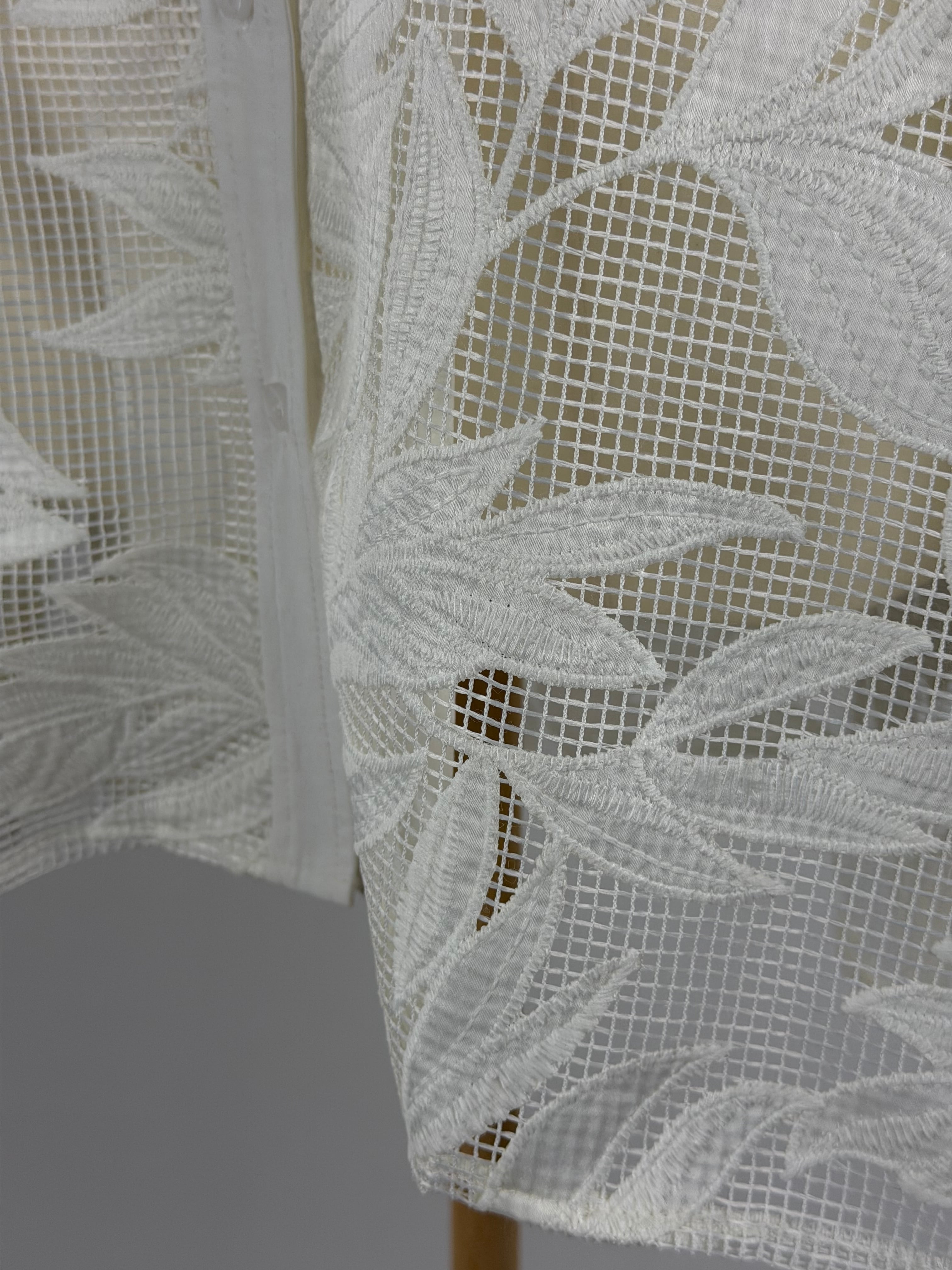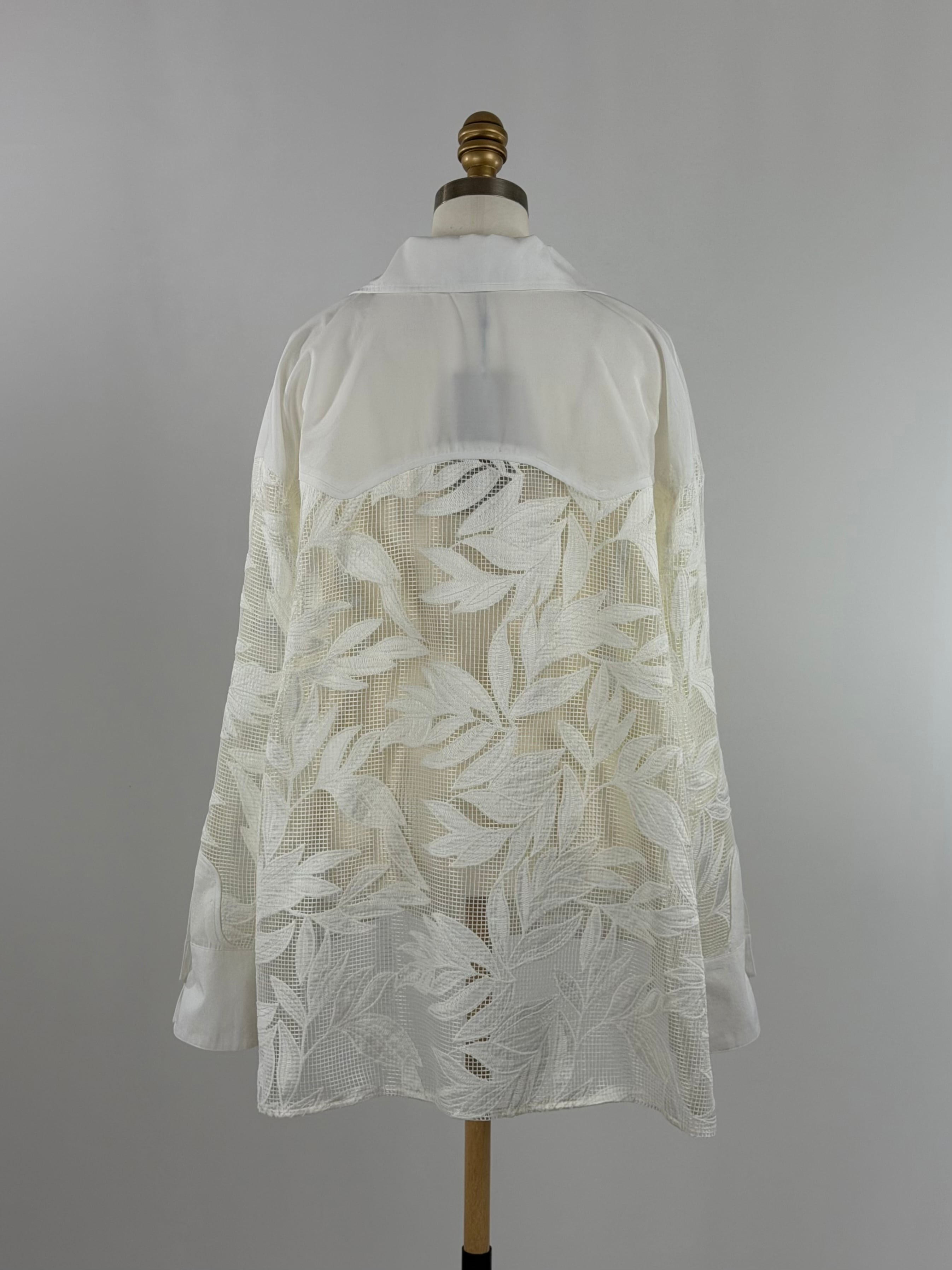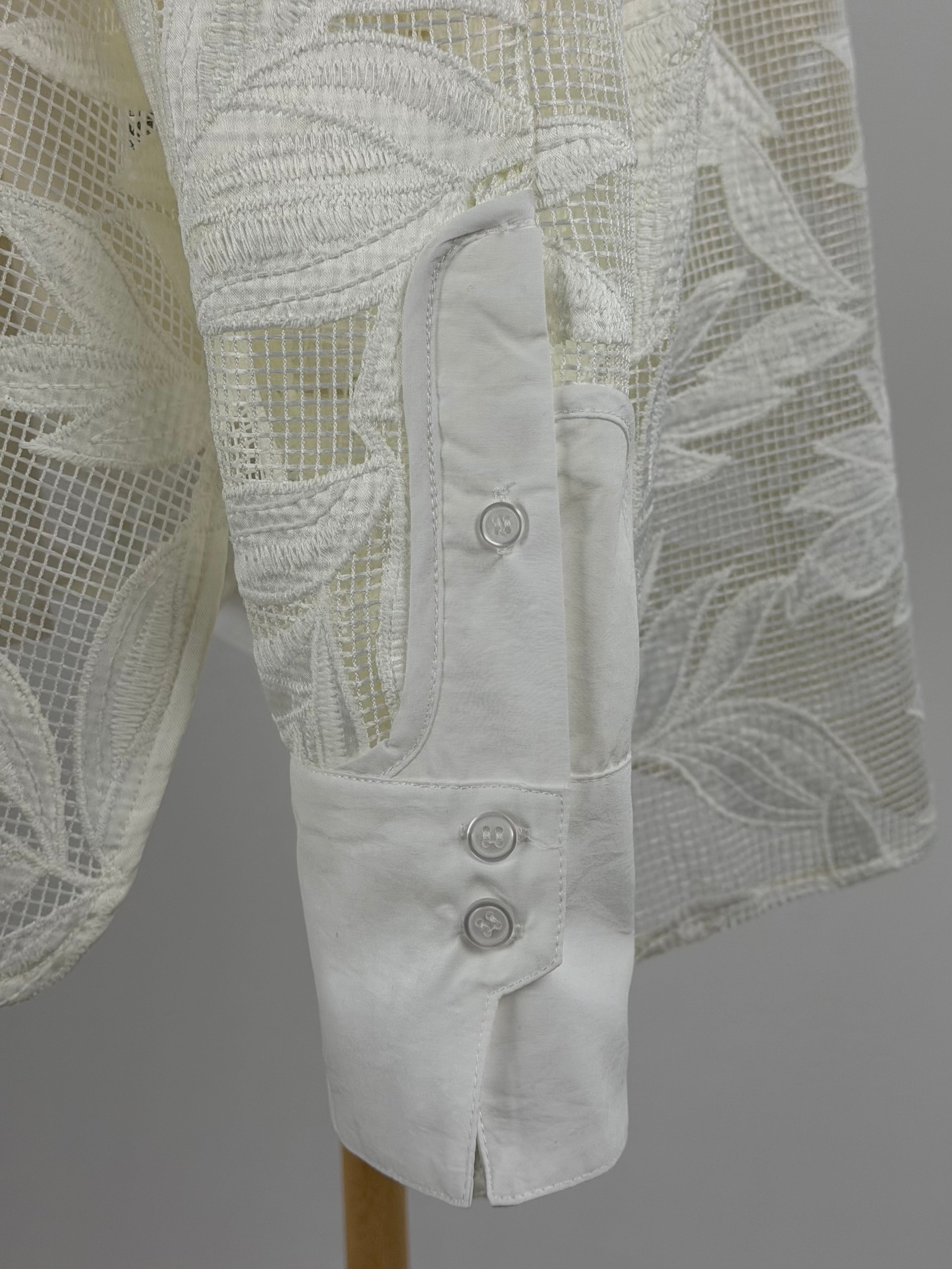 リーフ柄レースオープンカラーシャツ|ホワイト|Maglia Plus
