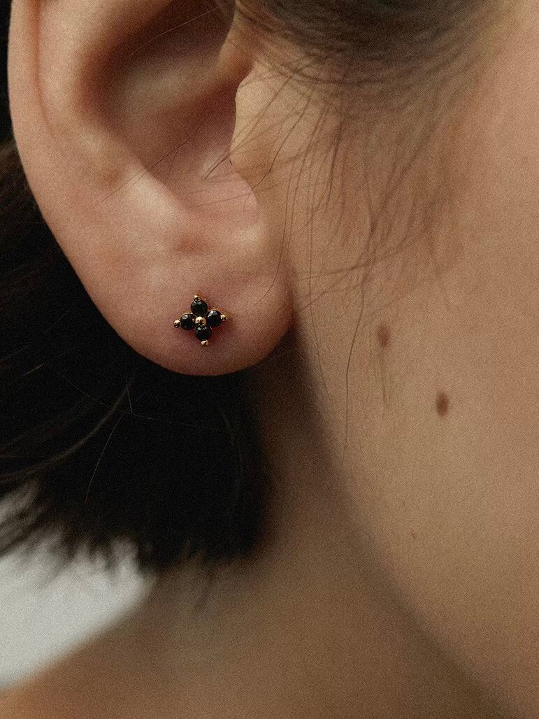 オニキスを四つあしらったフラワーモチーフのピアス。