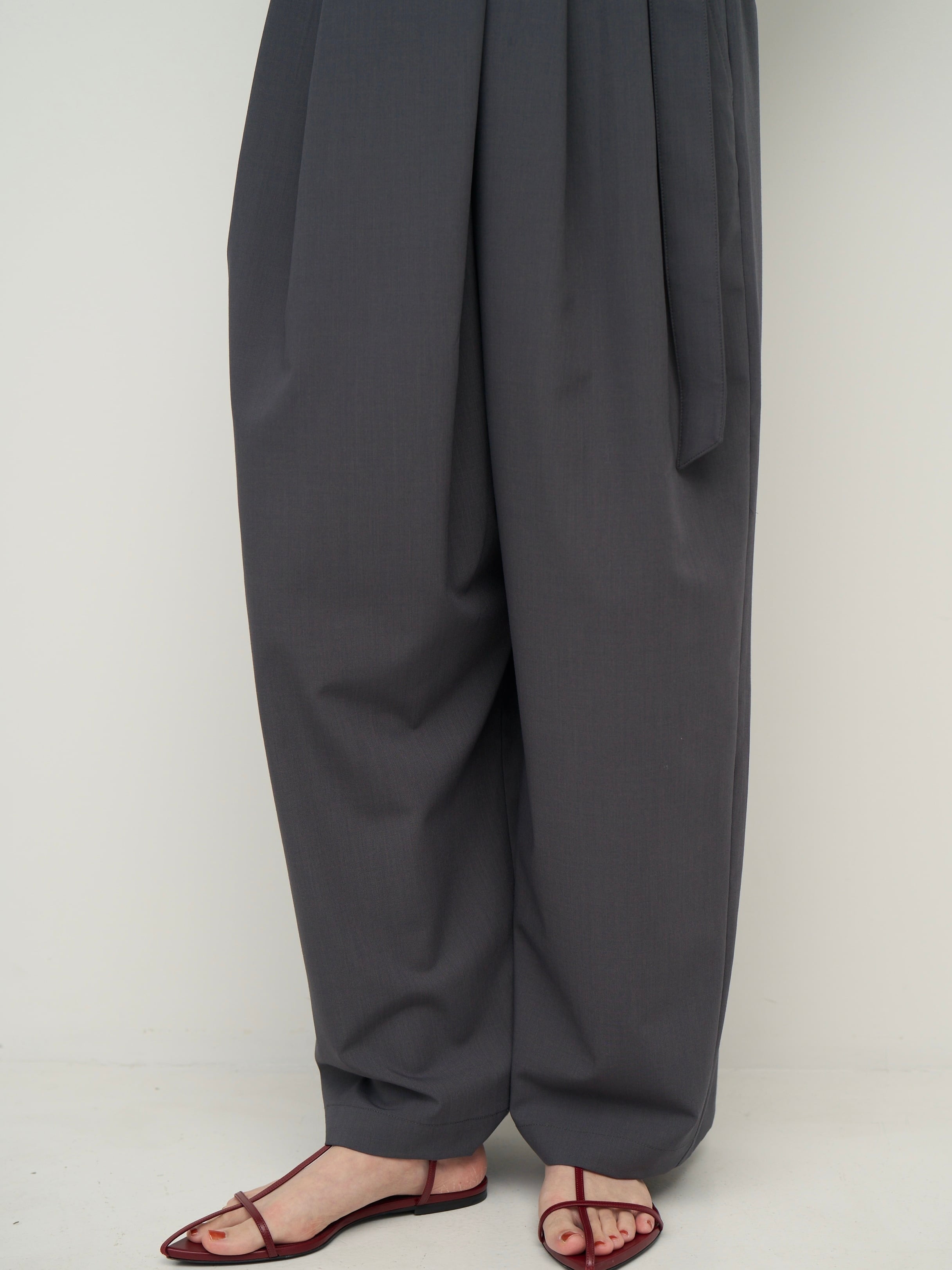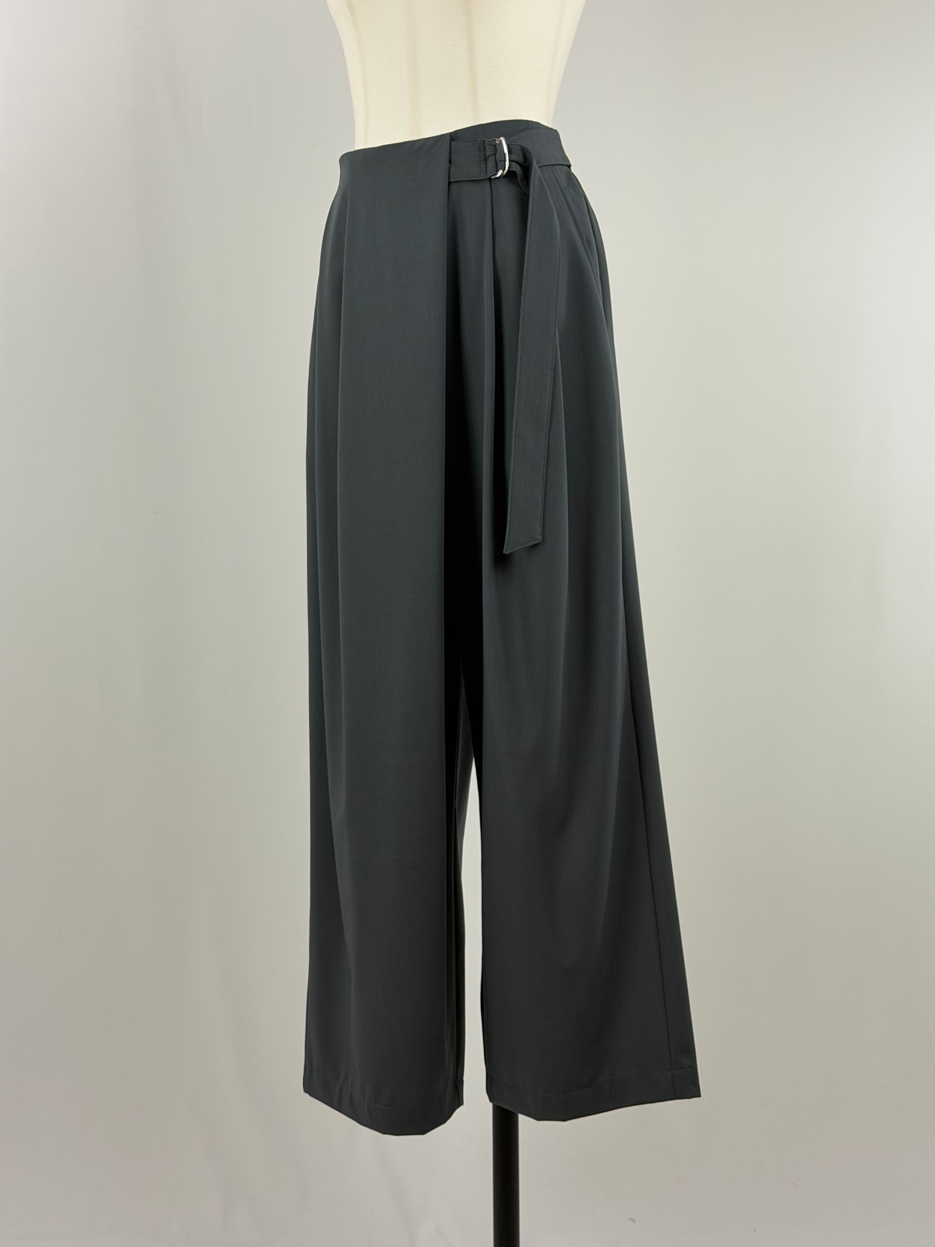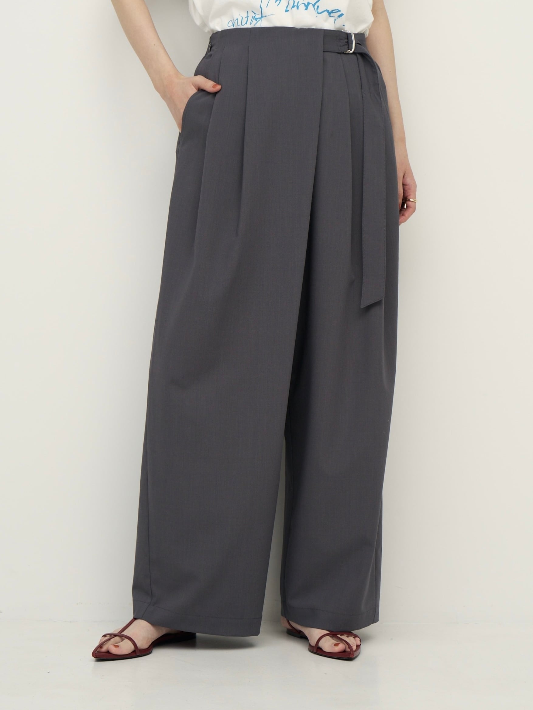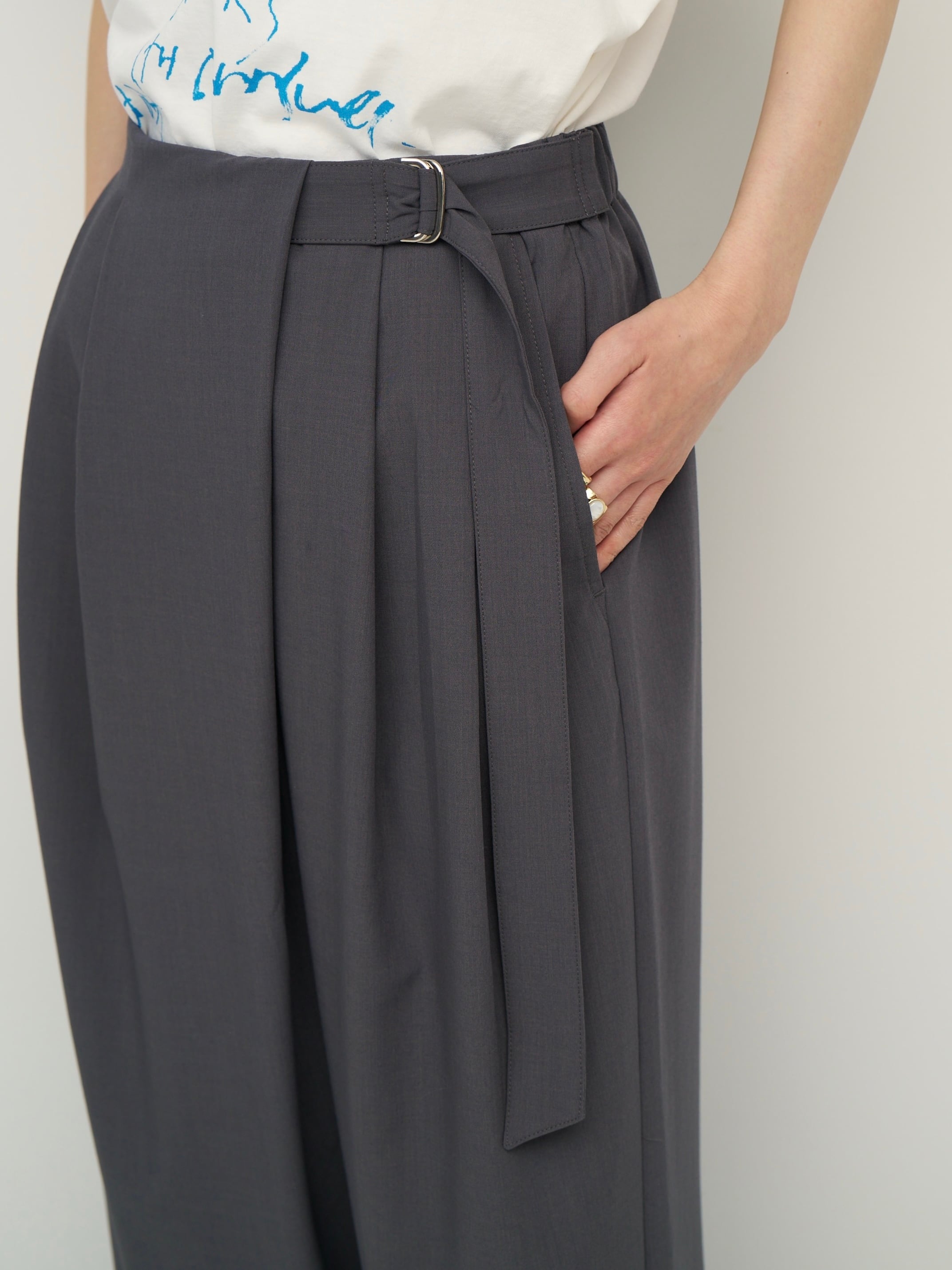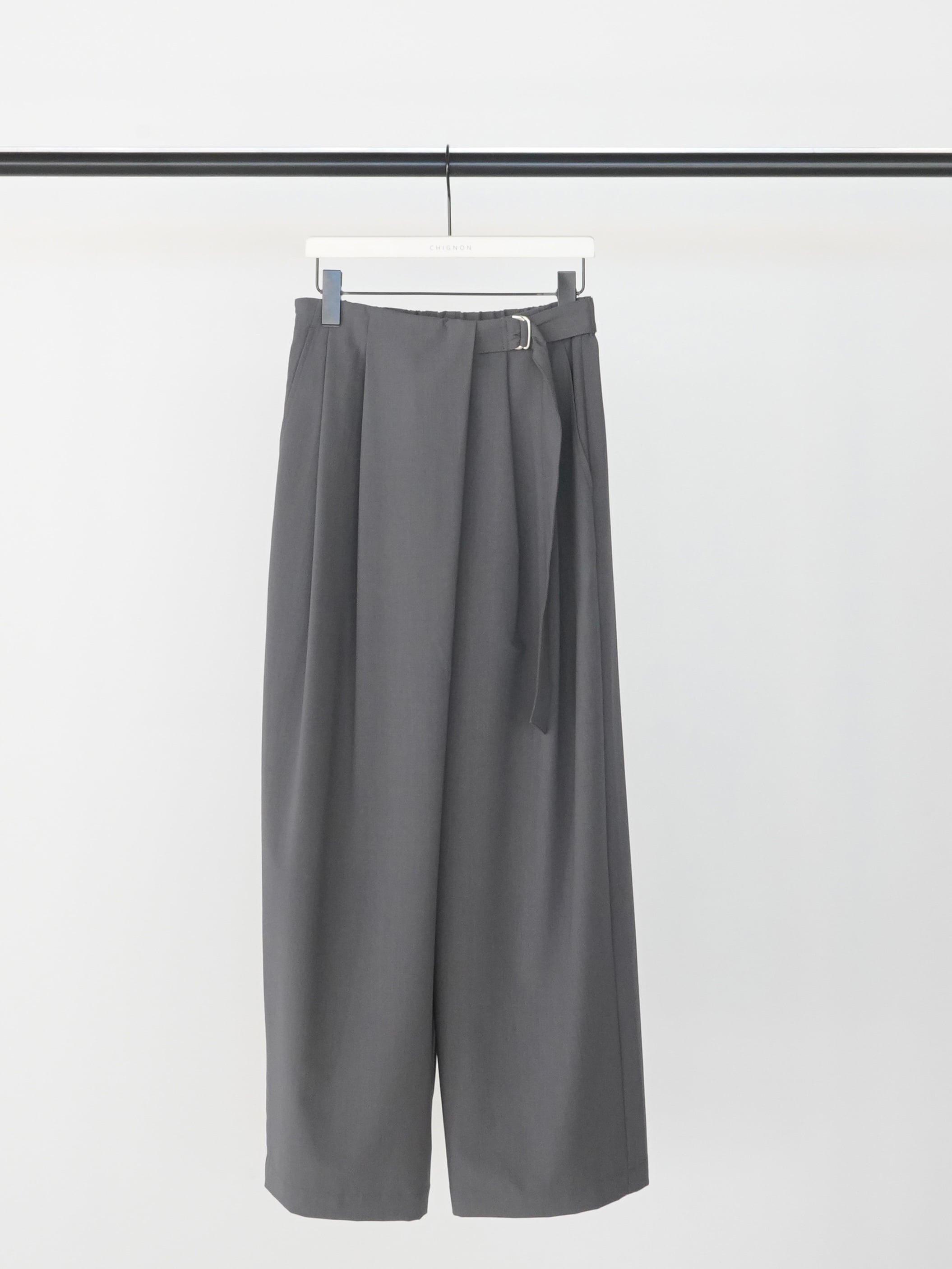 梳毛調ベルト付きラップパンツ|チャコールグレー|CHIGNON