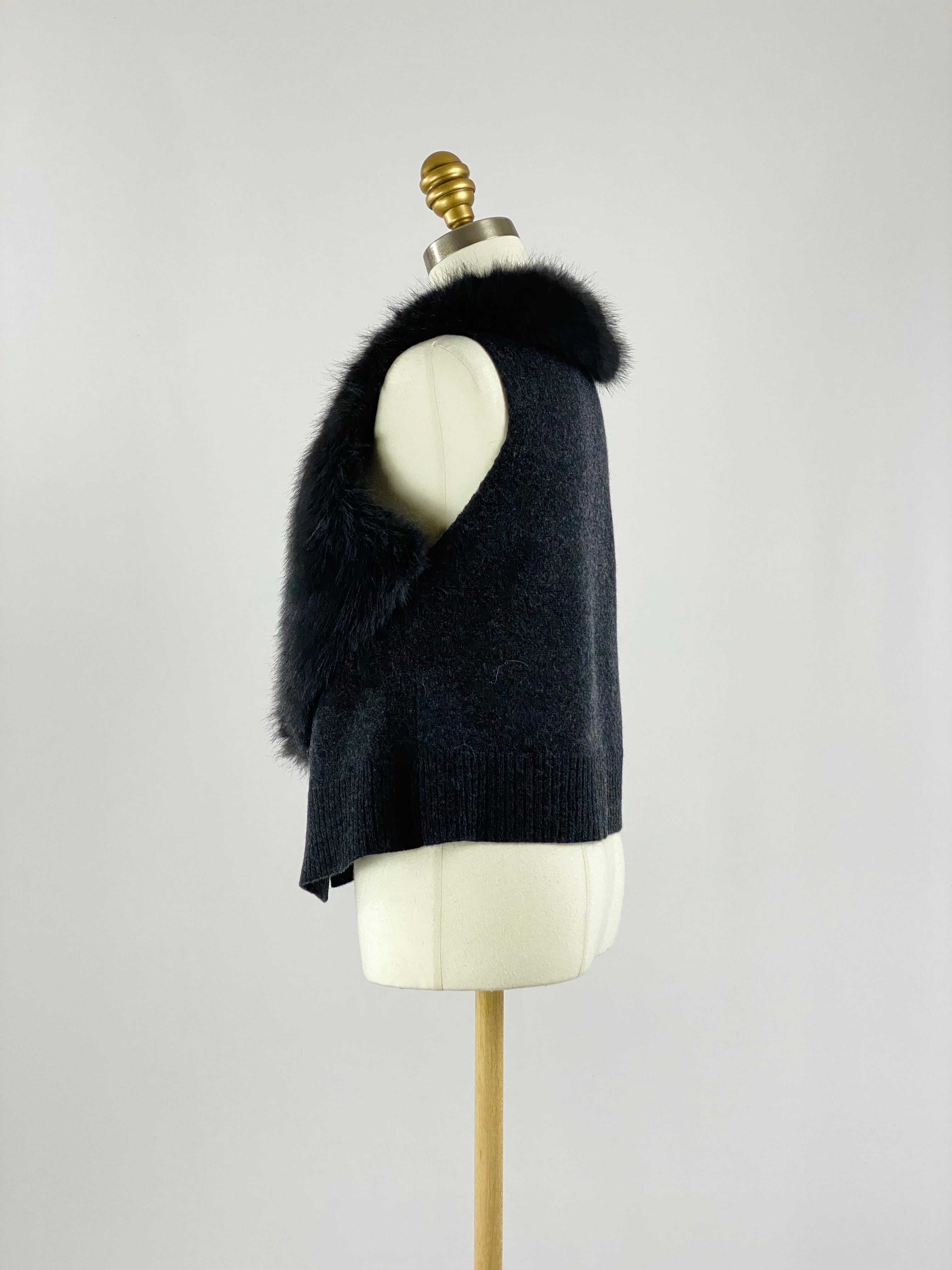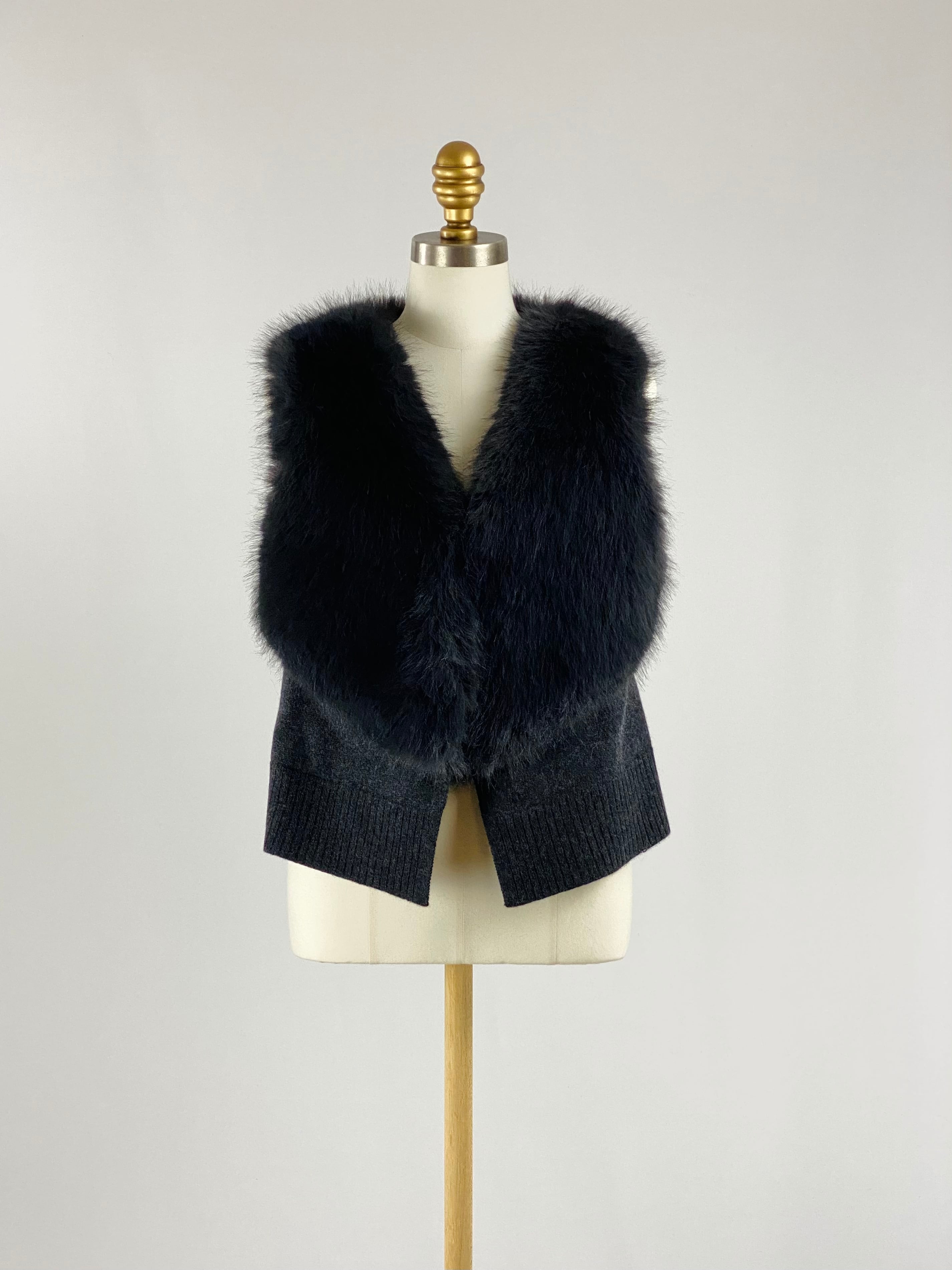 フォックスエコファーVネックニットベスト|チャコールグレー|Maglia Plus