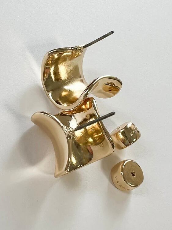 くるっと湾曲したワイドなフォルムピアスにCHIGNONの刻印入り円柱キャッチがついた大人可愛いデザイン。