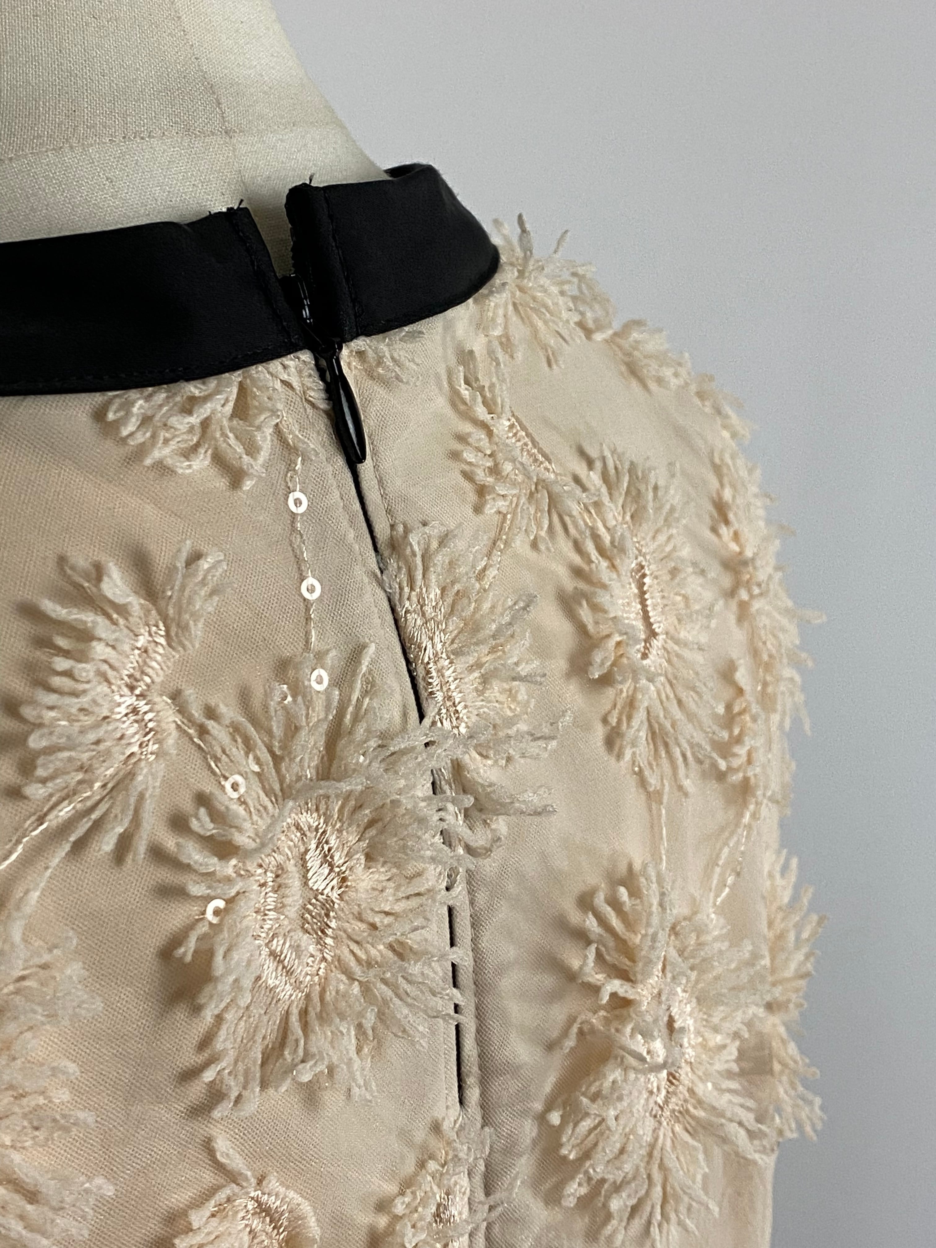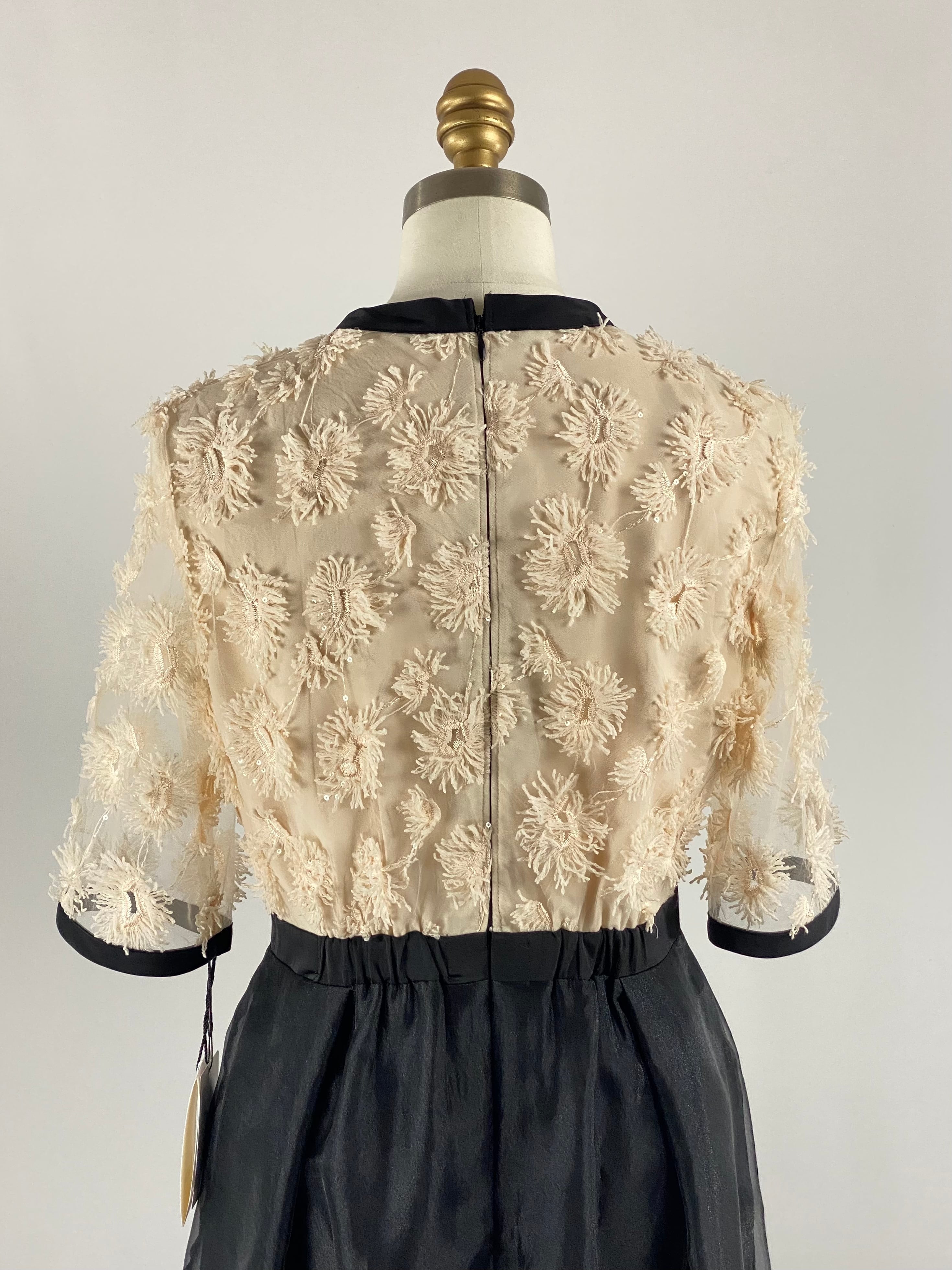 3D刺繍レースとエアリー感のあるオーガンジースカートの、配色合わせが印象的な1着。