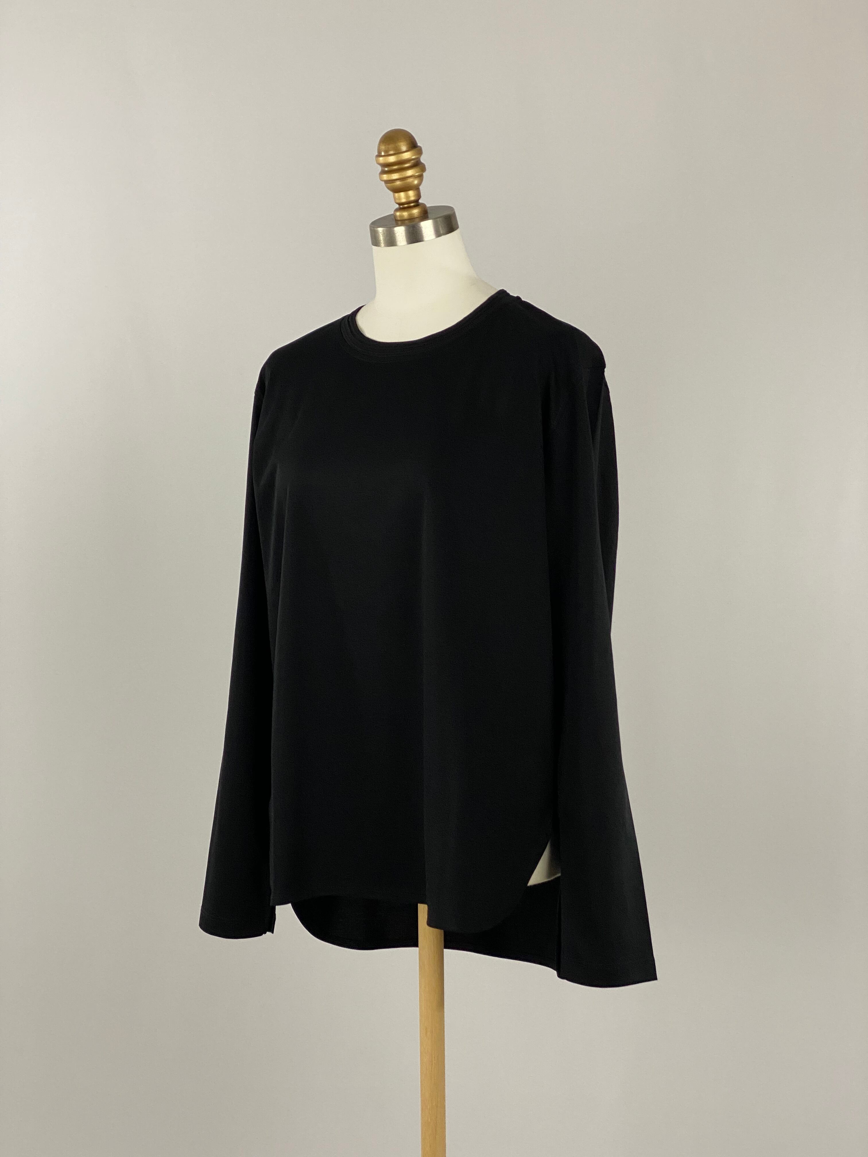 シルケットコットン ラウンドヘムロンT|ブラック|Maglia Plus